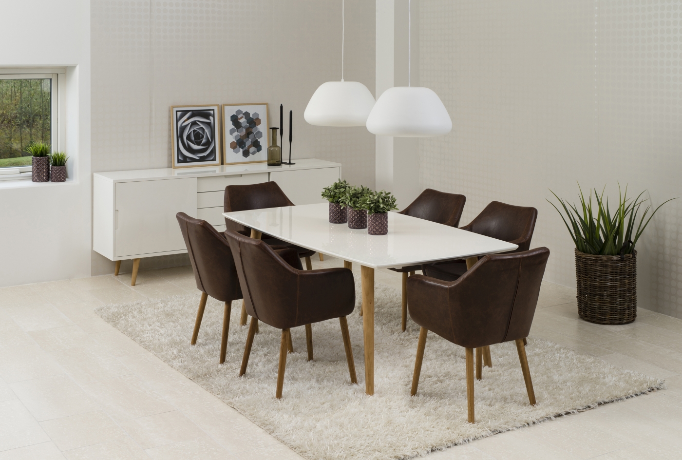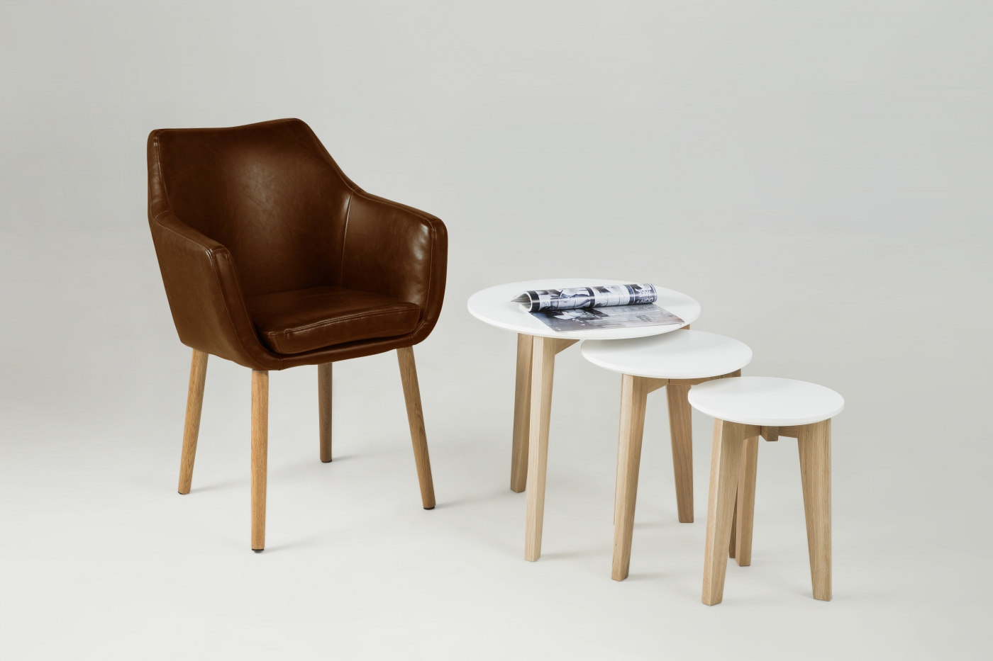 Jídelní židle s područkami Nora je elegantní sedací nábytek, který skvěle doplní váš jídelní stůl. Měkké čalounění a opěrky rukou vám zajistí maximální pohodlí během sezení. Podnož z masivního dubového dřeva v přírodním odstínu dodá stabilitu celé židli. Jídelní židli Nora lze také využít jako konferenční či jednací židli.