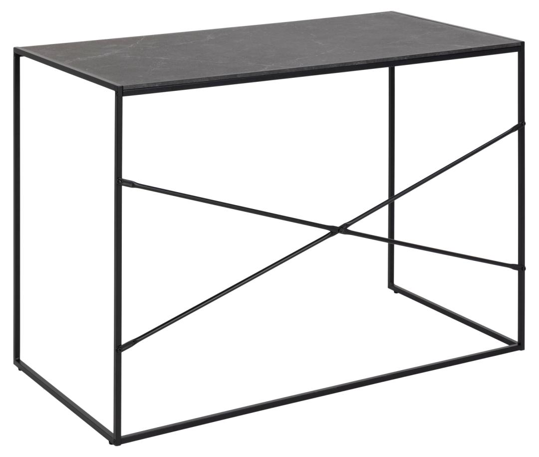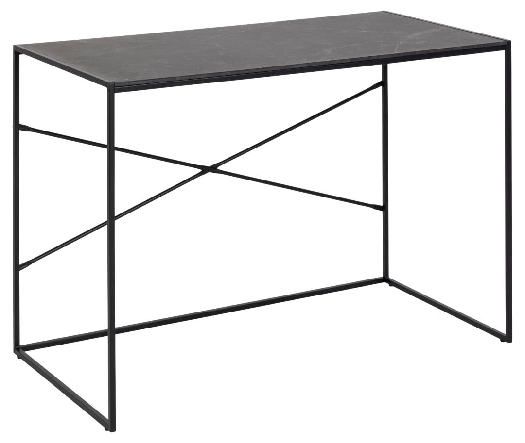 Pracovní stůl Infinity vás zaujme svým jednoduchým designem. Deska je z melaminu s moderním mramorovým potiskem s černě lakovanou kovovou podnoží. Materiály stolu vytváří elegantní spojení, které do vašeho domova dodá styl.
